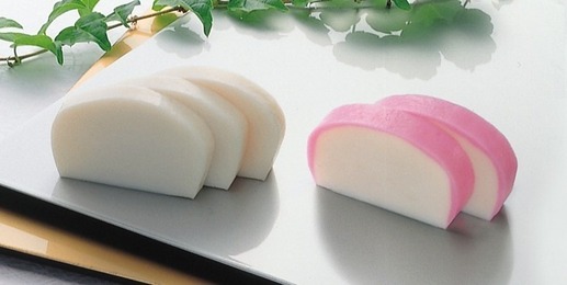 形が日の出に似ていることや、紅白の色が縁起がいいとされるかまぼこ(鈴廣かまぼこ提供)